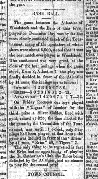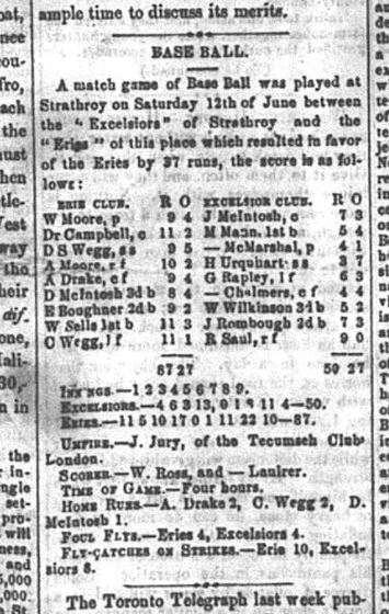 | 1870 | Aug 13 | Lyndoch | Tillsonburg | 46-38 | Lyndoch | TO 70Aug18. | TO |
